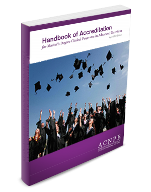ACNPE accreditation enables schools to ensure the educational quality of their programs and promote ongoing improvement -- through a voluntary peer-review process. The Council grants accreditation to master's degree clinical programs in nutrition that demonstrate satsifactory compliance with ACNPE's standards and policies. Applying for ACNPE accreditation is a multi-step process. It begins with submission of the Eligibility Application, demonstrating readiness to seek initial accreditation status. If the Council approves the application, the program will be invited to apply for initial accreditation. Key components of this process include submission of a Self-Study Report and subsequent site visit by the ACNPE team. Once initial accreditation is achieved, the Council periodically reaffirms the program's status.